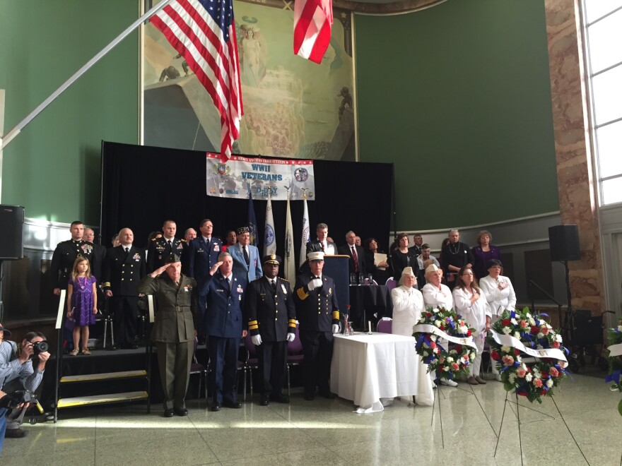 Today Onondaga County remembered and honored D-day Veterans and all Armed Service members in the annual Veteran’s Day ceremony at the War Memorial Center in Downtown Syracuse. 70 years ago U-S soldiers stormed the beaches of Normandy, France on D-Day to liberate Europe from Nazi control.