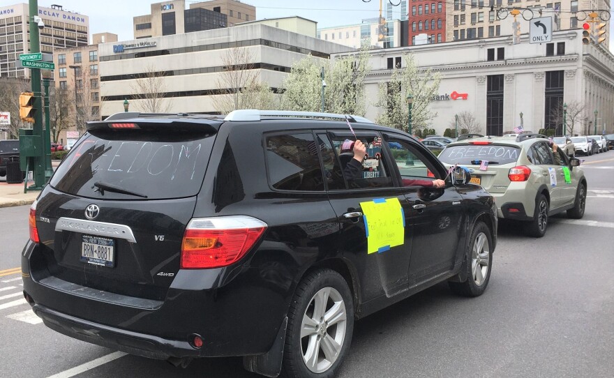 "I want to sit down and have dinner with my wife in a restaurant," Rigby said, shouting above blaring car horns. "This is crazy. Does it need to be sensible? Yes. We've got to be separated. We know the kind of activity that causes it [spread of the virus]. We're not stupid."