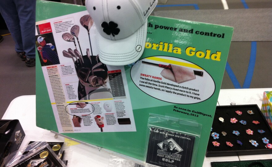 There are golf gadgets, too. One loud fellow drew my attention to a golf grip, rubbed it with some sort of potion, and told me to feel how grippy it was.